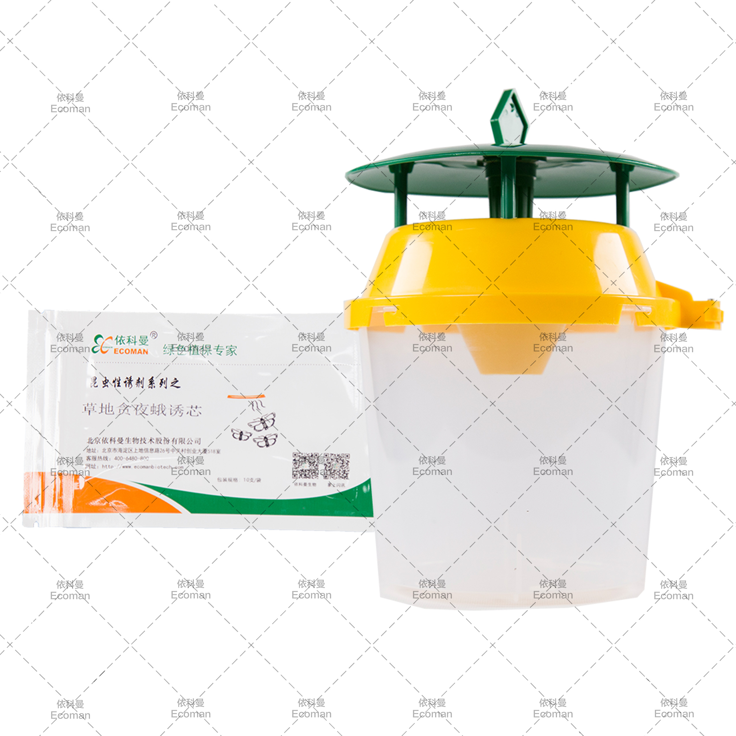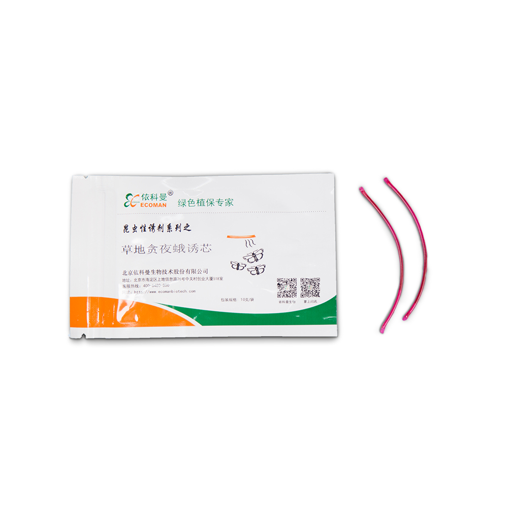 本品由北京依科曼生物技术股份有限公司自主研发生产。通过释放人工合成的草地贪夜蛾性信息素化合物,引诱雄蛾至诱捕装置中。该性诱芯对草地贪夜蛾的专一性强、灵敏度高,能够准确地反映田间害虫种群动态,降低成虫种群数量,减少成虫产卵量,压低基数,减轻下一代危害,是一项高效的监测与防控手段。